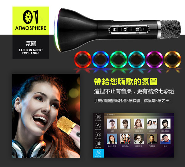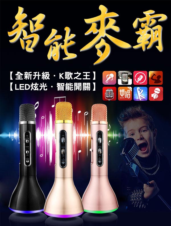 全新K歌體驗『LED炫彩智能藍牙行動KTV麥克風喇叭』